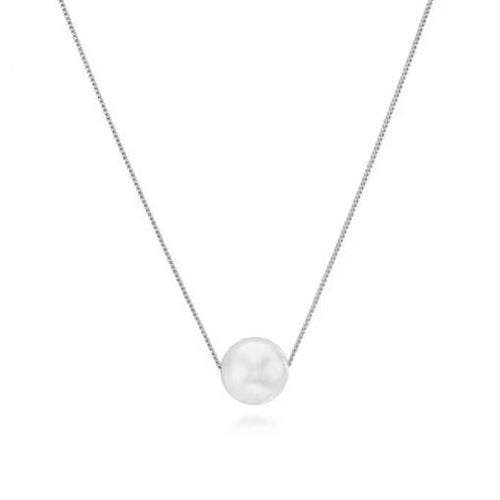 Floating White Pearl Blessing Necklace In Sterling Silver