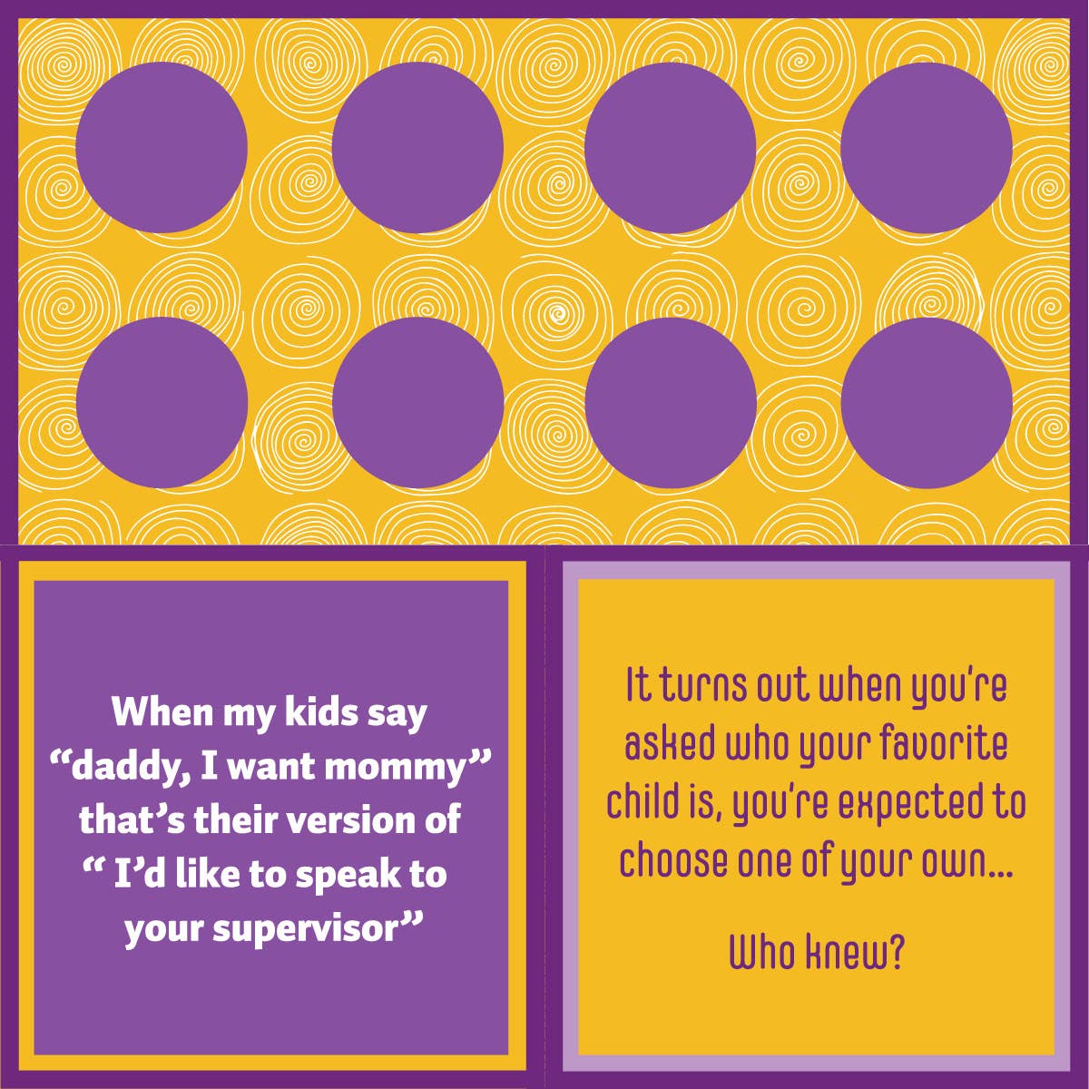 The cocktail napkin to add laughter to any gathering The original Double sided napkin. Printing on both sides for extra fun. 5"x5" cocktail napkin 20 (3 ply) napkins in each package
