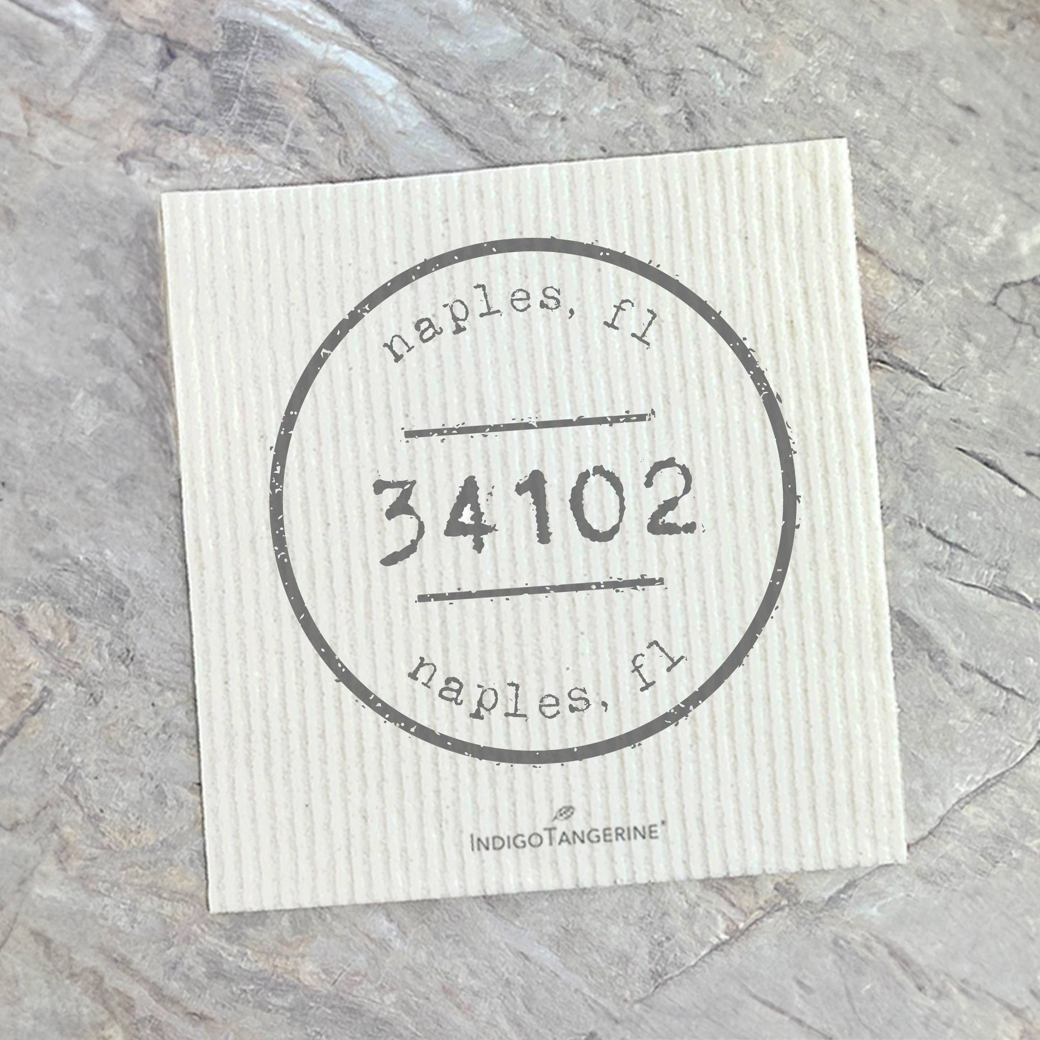 Indigo Tangerine - Postmark Stamp City/State/Zip - Custom Swedish Dish Cloth