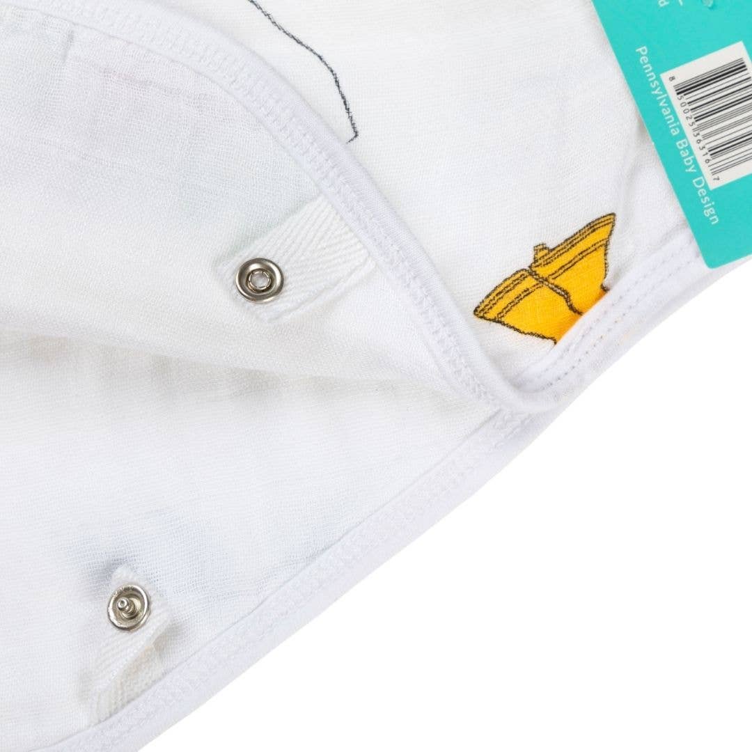 Celebrate some of the unique things people love about Pennsylvania. These unisex burp and bibs are great gifts. Everyone needs more bibs. Make your own multipacks. Extremely soft and extremely thick, they will lap up everything thrown at them. These are also very large and wrap fully around and can be comfortably worn for hours The fact that they function both as burp cloths and bibs make it a great transitional item that people can use for years. It can be used as a burp cloth in the early months, and then it snaps to convert into a full coverage bib once solid foods are introduced. Size: 10” x 24”; Fabric: Bamboo Rayon, Cotton Designed in Louisiana; manufactured in China