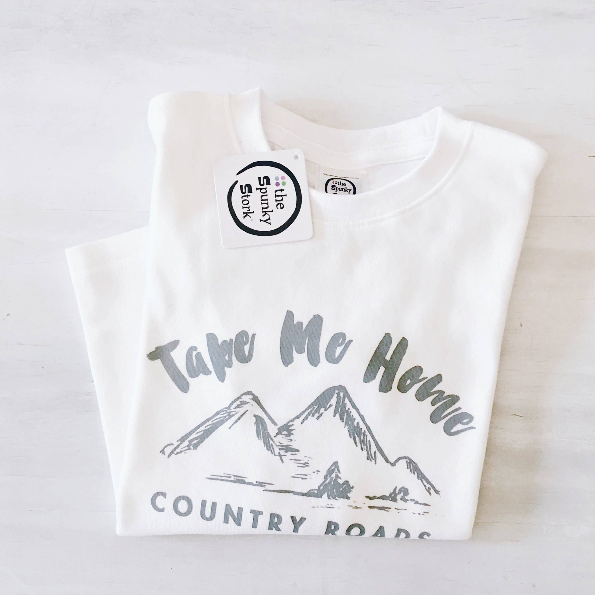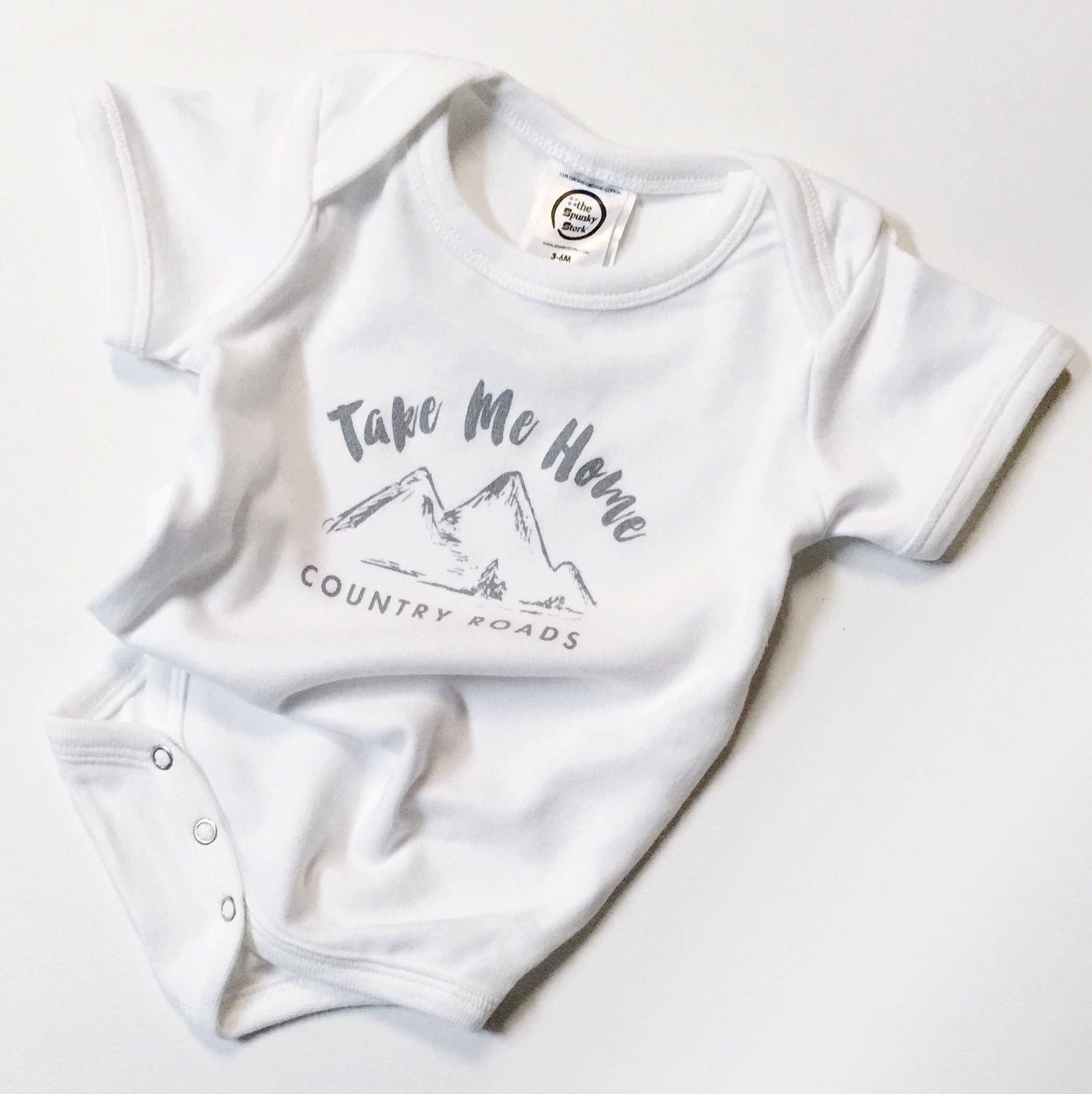Take me home, country roads, to the place, I belong... West Virginia, mountain mama. Take me home, country roads. Did you sing that? You did! It's impossible not to. Whether you are a WVU alum, a Mountaineer fan, or just love the song, your little one will love this organic cotton baby bodysuit and toddler shirt.