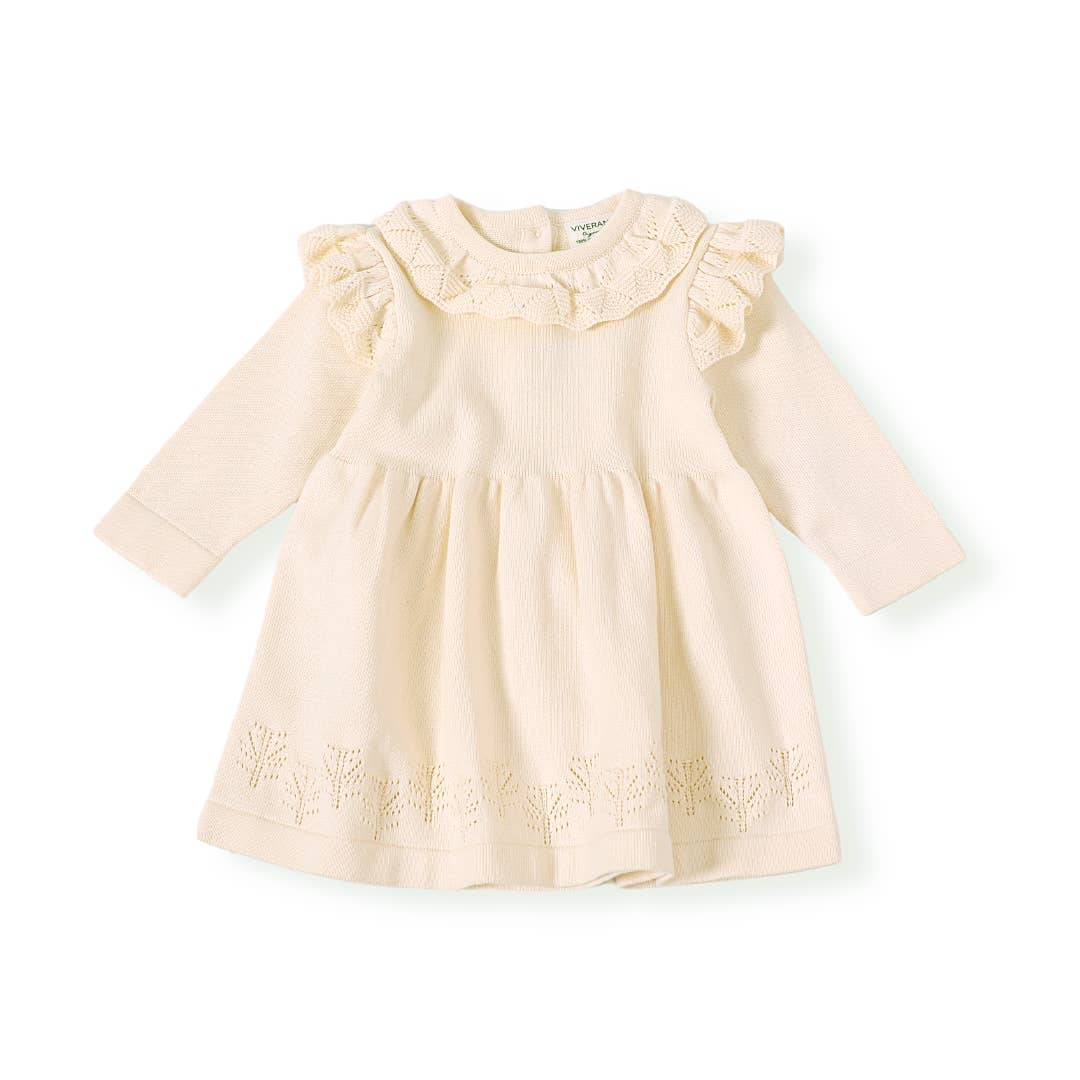 Viverano Organics - Milan Ruffle Collar Pointelle Knit Baby Dress - Organic: Cream / 3-6M