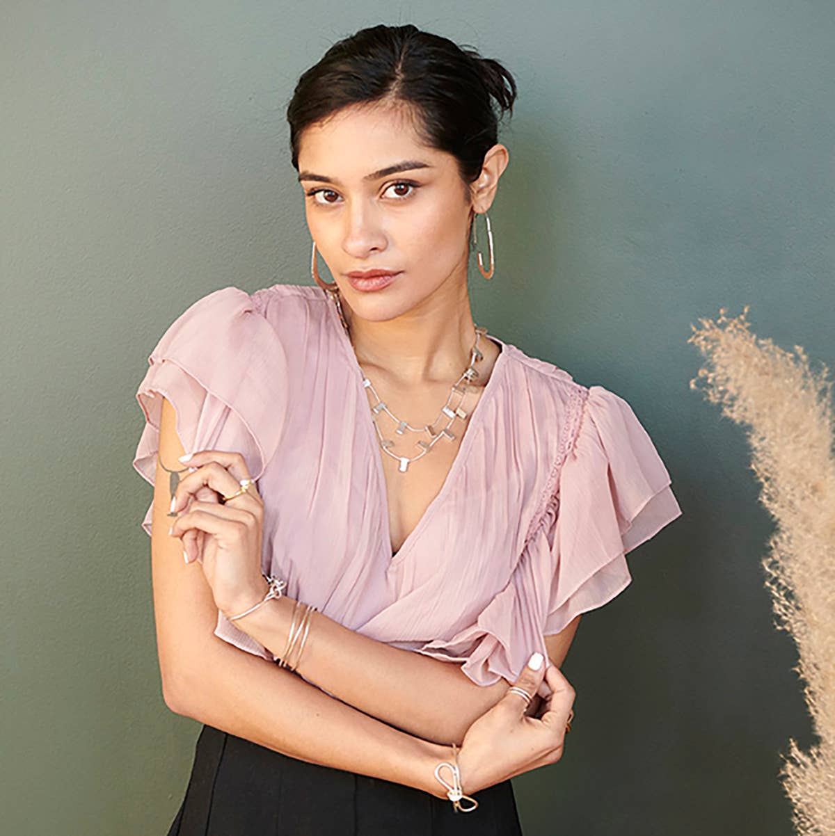 Three rounded, matte metallic bands individually ebb and flow to form this dimensional, fluid cuff. Available in gold and silver. Measures 2.5" in diameter. Adjusts to fit most wrists. Sustainably handmade by women artisans in India.